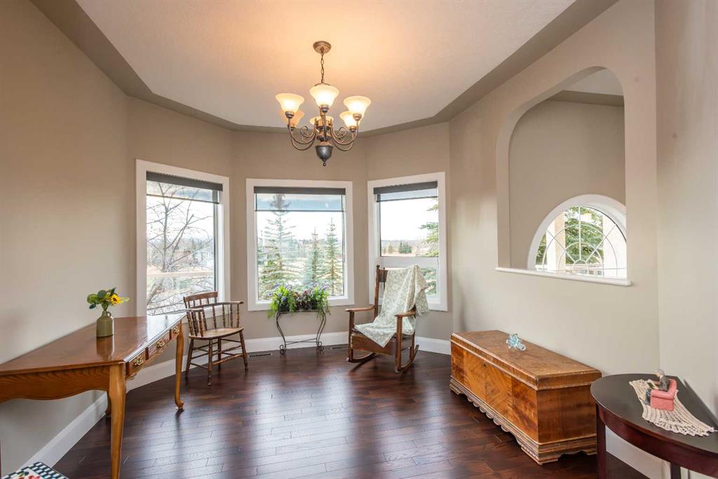 Wow, set on a 2-acre parcel in desirable Country Lane Estates, this exceptional acreage offers unmatched tranquillity, unobstructed mountain views, and quick access—just 20 minutes to downtown Calgary and minutes to the Trans-Canada Highway. Substantially renovated in 2017, this impressive bungalow showcases extensive updates and a near-perfect layout! Massive windows throughout capture panoramic views in all directions, filling the home with natural light and a sense of serenity. The updated chef’s kitchen features a full appliance package—including stove, microwave, dishwasher, and refrigerator—with seamless flow into the living and dining areas. The main floor offers three generous bedrooms, including a luxurious primary retreat with private deck access, a steam shower, a bidet, and a spacious 5-piece ensuite. The fully developed walkout lower level provides exceptional versatility for extended family, guests, or nanny accommodations. It includes a full second kitchen with a complete appliance package, a large bedroom, a bright recreation area, a formal den, ample storage (including a playroom under the stairs), and a temperature-controlled wine cellar with professional racking. In-floor heating on this level ensures year-round comfort. Mechanical upgrades include a high-efficiency furnace, hot water tank, furnace-mounted professional HEPA filter, air conditioning, in-floor heat in both the lower level and attached garage, central vacuum, and a timer-controlled exterior lighting system.Car enthusiasts and hobbyists will love the heated triple attached garage with epoxy floors, knockdown ceilings, included metal cabinets and workbench, and a Cal Canna heater. Even more impressive is the nearly 900 sq. ft. heated workshop/garage, complete with 12-ft ceilings, 220V service, and a gas line—perfect for equipment, vehicles, and large-scale projects.Outdoors, the property continues to shine: a wraparound deck, additional decks off multiple rooms, a large rear concrete patio, a fenced backyard, a fully paved driveway, and negotiable lawn/snow maintenance equipment for turnkey acreage living. Bingham Crossing shopping complex under construction just 4 minutes away, Phil Mickelson golf course, Launch Pad, Calaway Park, private/public schools (bussing) and quick access to city or Rocky Mountains. Book a private showing to view this amazing haven.