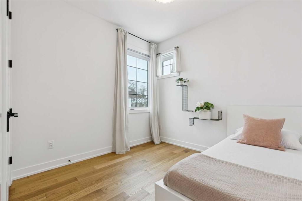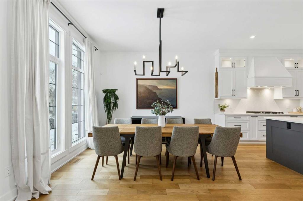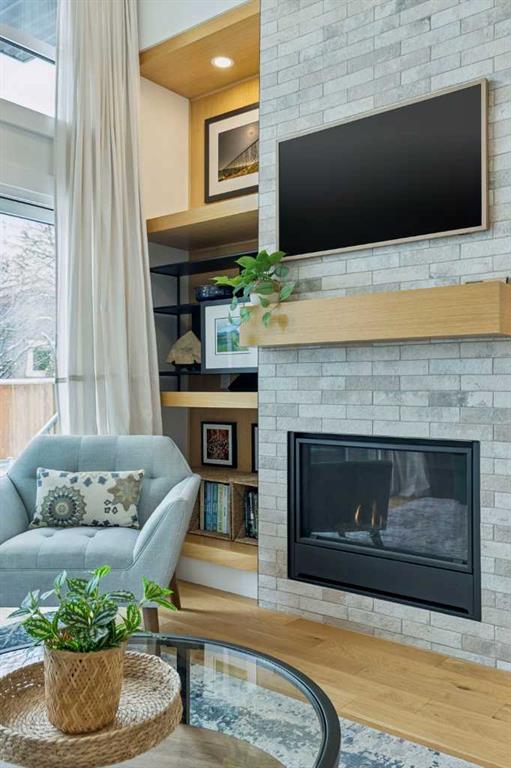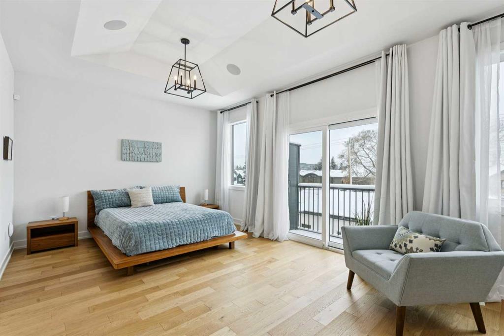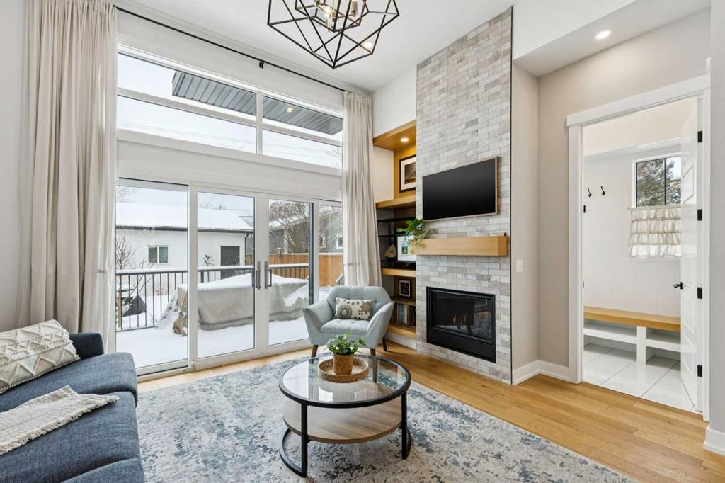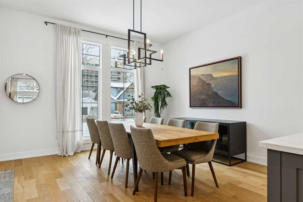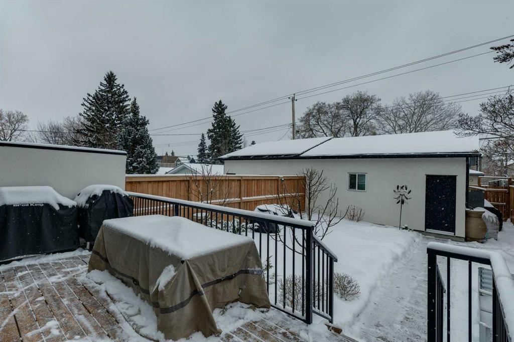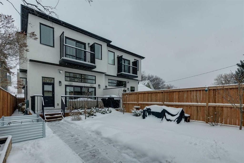 WOW ! Locals love this pocket of Hillhurst for its walkability to top-rated schools and its charming, tree-lined streets. Tucked away from main thoroughfares and set on an extra-deep 135’ west-facing backyard, this home offers a quiet residential feel that’s increasingly rare in the inner city. Savvy buyers will immediately recognize the value of purchasing a truly turn-key, like-new home where all of the thoughtful upgrades have already been completed. Tasteful custom window coverings, upgraded lighting, central air conditioning, Kinetico water softener, feature-painted walls, added shelving and hooks throughout, custom wool stair runners, built-in ceiling speakers, and a statement custom front door — it’s all done. The property is expertly landscaped, both front and back, including a beautiful custom stone patio that creates a perfect outdoor entertaining space. The fully finished garage is EV-ready and drywalled and painted for a clean, polished look. The interior selections are clean and timeless, yet still full of personality. Ceiling heights throughout the home elevate the overall feel — soaring 10- and 12-foot ceilings on the main floor, 10-foot ceilings upstairs, and 9-foot ceilings in the fully finished lower level create a bright, airy atmosphere rarely found in infill properties. The main floor layout is ideal for both daily living and entertaining. A stunning 16-foot island anchors the kitchen — a true statement piece and natural gathering space for friends and family. The kitchen is beautifully appointed with full-height crisp white cabinetry, quartz countertops throughout, abundant storage, and expansive prep space. Premium appliances include a 5-burner gas cooktop, wall oven, convection microwave, dishwasher, and a 48-inch side-by-side built-in refrigerator, creating a seamless, high-end aesthetic. Whether hosting a dinner party or enjoying casual mornings at the island, this space delivers exceptional style and functionality. The front dining area overlooks the charming tree-lined street, while the rear living room — featuring a fireplace with included Samsung Frame TV — opens through sliding doors to the sunny west-facing deck and professionally designed backyard, perfect for summer evenings and entertaining. The mudroom is thoughtfully designed with built-in lockers and bench seating, and even the front entry impresses with a spacious walk-in closet. Upstairs, the primary retreat enjoys west exposure and a private balcony overlooking the lush neighbourhood streetscape — perfect for catching the evening sun. The spa-inspired ensuite features a freestanding tub, custom glass shower, double vanity, heated floors, and a private water closet. The upper laundry room includes side-by-side Electrolux machines, sink, and hanging space. The fully finished lower level is where the fun happens. Featuring radiant in-floor heating, a spacious open recreation area, and a massive entertainer’s bar complete with beverage centre !
