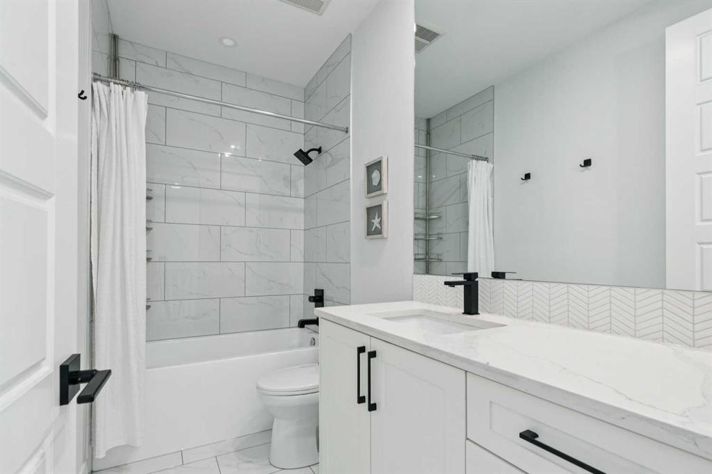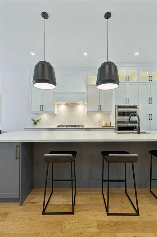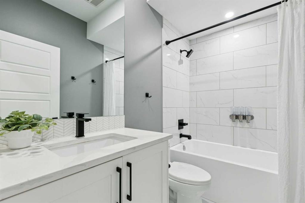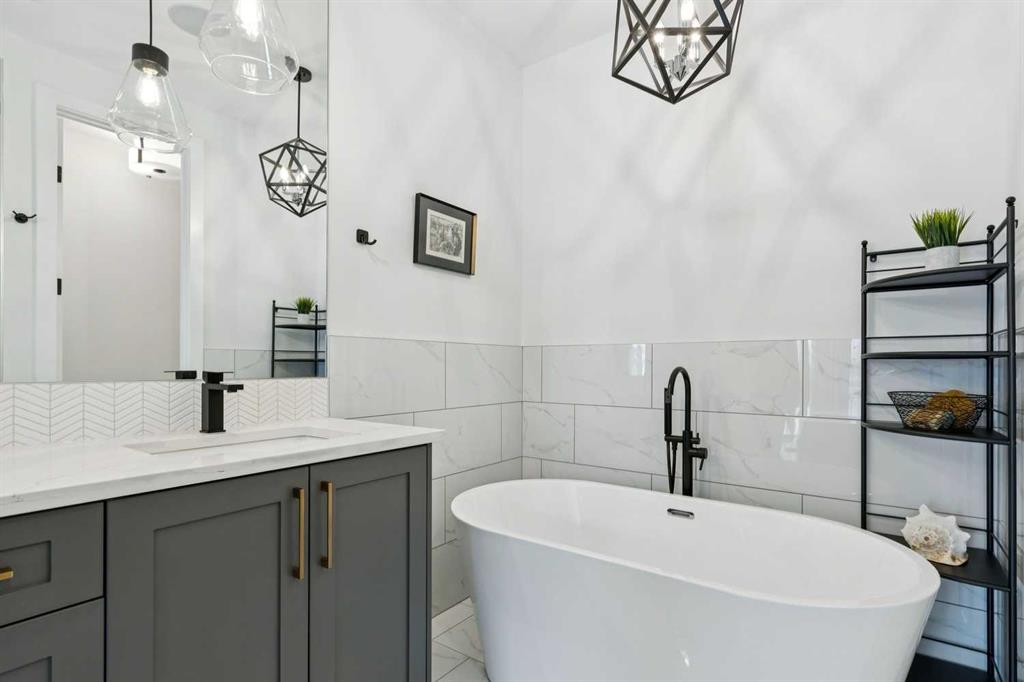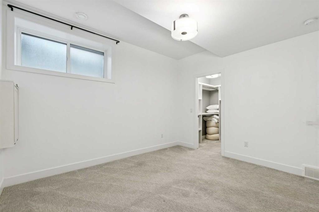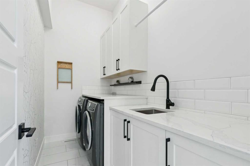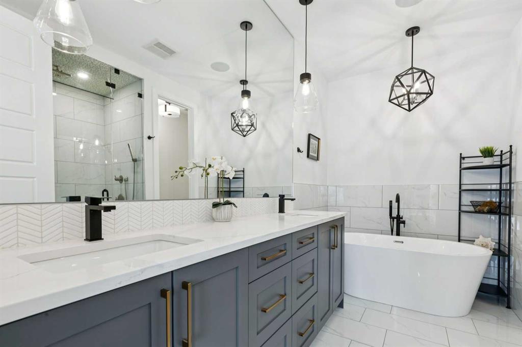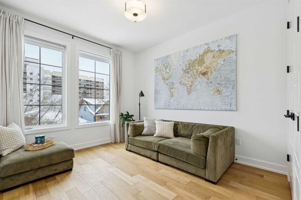 WOW ! Locals love this pocket of Hillhurst for its walkability to top-rated schools and its charming, tree-lined streets. Tucked away from main thoroughfares and set on an extra-deep 135’ west-facing backyard, this home offers a quiet residential feel that’s increasingly rare in the inner city. Savvy buyers will immediately recognize the value of purchasing a truly turn-key, like-new home where all of the thoughtful upgrades have already been completed. Tasteful custom window coverings, upgraded lighting, central air conditioning, Kinetico water softener, feature-painted walls, added shelving and hooks throughout, custom wool stair runners, built-in ceiling speakers, and a statement custom front door — it’s all done. The property is expertly landscaped, both front and back, including a beautiful custom stone patio that creates a perfect outdoor entertaining space. The fully finished garage is EV-ready and drywalled and painted for a clean, polished look. The interior selections are clean and timeless, yet still full of personality. Ceiling heights throughout the home elevate the overall feel — soaring 10- and 12-foot ceilings on the main floor, 10-foot ceilings upstairs, and 9-foot ceilings in the fully finished lower level create a bright, airy atmosphere rarely found in infill properties. The main floor layout is ideal for both daily living and entertaining. A stunning 16-foot island anchors the kitchen — a true statement piece and natural gathering space for friends and family. The kitchen is beautifully appointed with full-height crisp white cabinetry, quartz countertops throughout, abundant storage, and expansive prep space. Premium appliances include a 5-burner gas cooktop, wall oven, convection microwave, dishwasher, and a 48-inch side-by-side built-in refrigerator, creating a seamless, high-end aesthetic. Whether hosting a dinner party or enjoying casual mornings at the island, this space delivers exceptional style and functionality. The front dining area overlooks the charming tree-lined street, while the rear living room — featuring a fireplace with included Samsung Frame TV — opens through sliding doors to the sunny west-facing deck and professionally designed backyard, perfect for summer evenings and entertaining. The mudroom is thoughtfully designed with built-in lockers and bench seating, and even the front entry impresses with a spacious walk-in closet. Upstairs, the primary retreat enjoys west exposure and a private balcony overlooking the lush neighbourhood streetscape — perfect for catching the evening sun. The spa-inspired ensuite features a freestanding tub, custom glass shower, double vanity, heated floors, and a private water closet. The upper laundry room includes side-by-side Electrolux machines, sink, and hanging space. The fully finished lower level is where the fun happens. Featuring radiant in-floor heating, a spacious open recreation area, and a massive entertainer’s bar complete with beverage centre !
